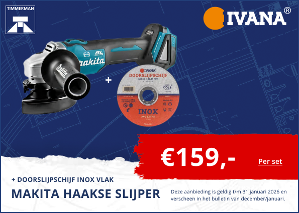 Kenmerken:– Verzinkt– Platkop– Snijpunt– TORX-20 Leverbaar in verschillende maten:– 4.0×40/24 2.000 stuks– 2.0×50/30 1.500 stuks– 4.0×60/36 1.250 stuks– 5.0×70/42 600 stuks– 5.0×80/50 500 stuks Deze aanbieding is geldig t/m 31 december en staat in het bulletin van december/januari 2026. Bezoek onze webshop of kom eens langs in een van onze filialen in